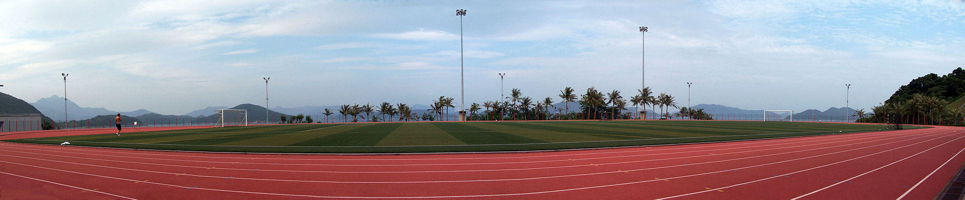 在田徑跑道中央,一般都植有草地,作為擲項(xiàng)等田賽或作足球場(chǎng)之用。